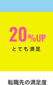CHOICE!の利用者は現状の仕事の悩みをカウンセラーに日々相談する中でより自分の希望の条件の職場環境を探すことができ、仕事場に対する満足度が平均20%アップしています。